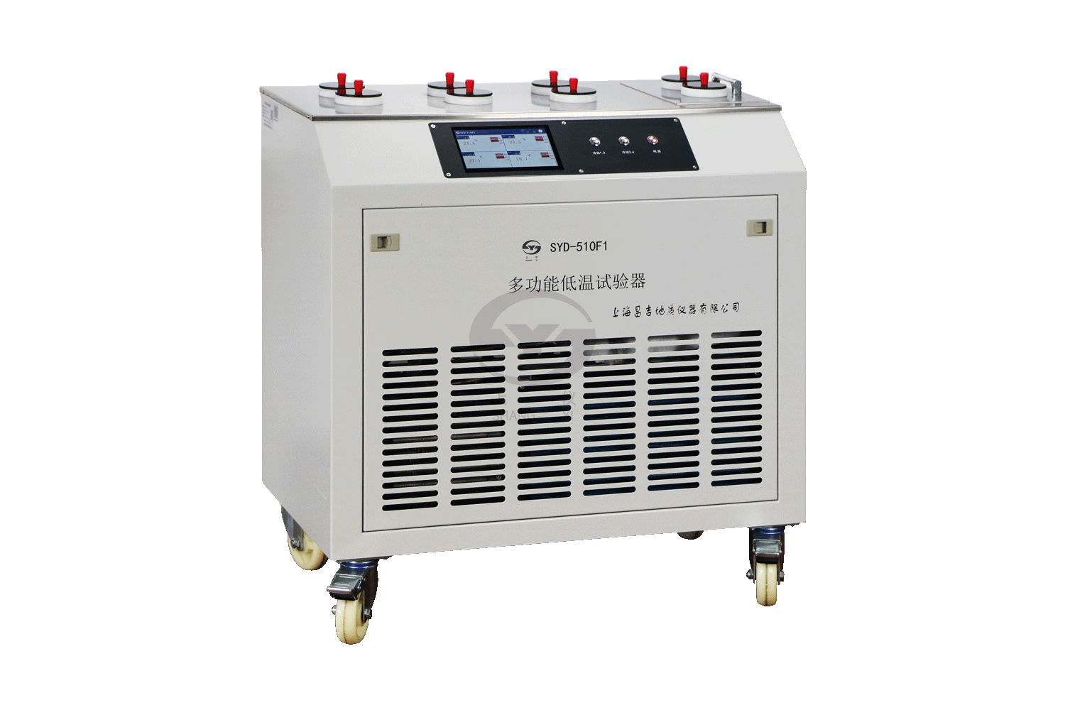 | 低溫性能 | 傾點(diǎn)、凝點(diǎn)、濁點(diǎn) | 多功能低溫試驗(yàn)器(傾點(diǎn)、凝點(diǎn)、濁點(diǎn)) | SYD-510F1 | 金屬浴四槽八孔,落地式帶滾輪結(jié)構(gòu);一機(jī)可做傾點(diǎn),濁點(diǎn)、凝點(diǎn)、冷濾點(diǎn)試驗(yàn);液晶觸摸屏控制四冷槽溫度,獨(dú)立控溫,實(shí)時(shí)顯示冷槽溫度;具有自動(dòng)保護(hù)功能,任一冷槽高溫異常,自動(dòng)切斷工作,確保儀器的耐久性 | |