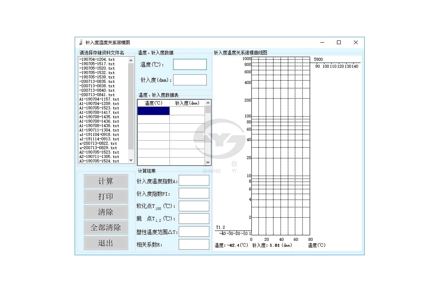 9、儀器具有專有的“計(jì)算機(jī)繪圖軟件+數(shù)據(jù)精確讀取技術(shù)”,可自動(dòng)繪制和打印瀝青針入度關(guān)系諾模圖。