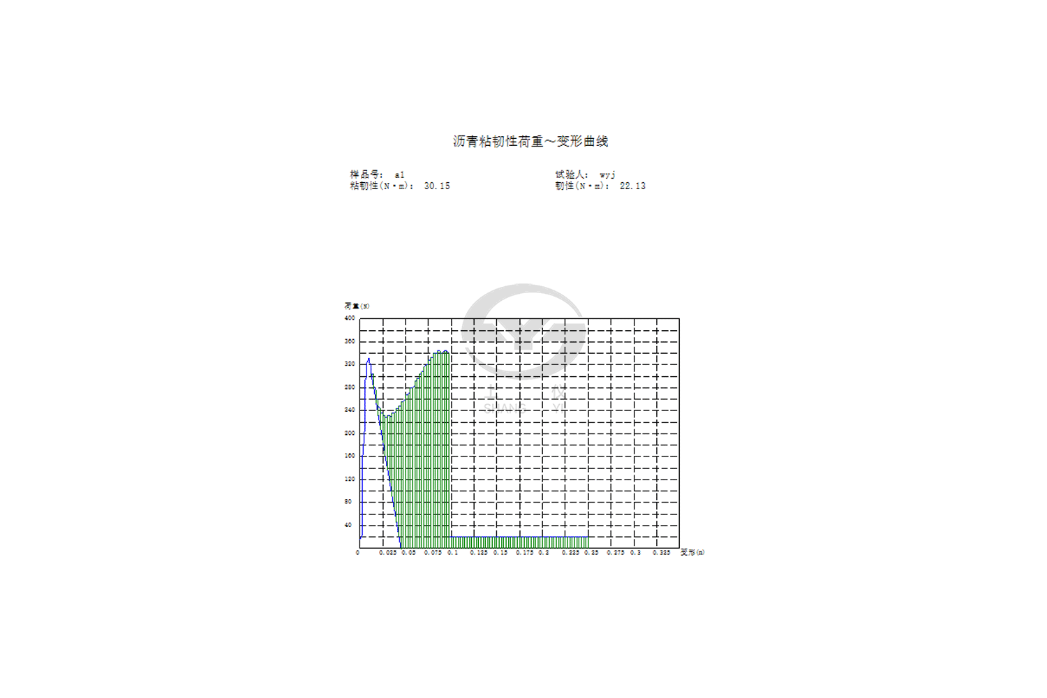 2、自主研發(fā)的試驗檢測軟件,能自動繪制打印“粘韌性試驗荷重~變形曲線”和自動計算瀝青的粘韌性、韌性。
