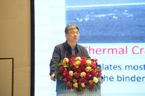 武漢理工大學(xué)首席教授、俄羅斯自然科學(xué)院吳少鵬院士為我們帶來了題為《全組分固廢瀝青路面高質(zhì)再生技術(shù)》的精彩演講。吳院士從研究背景、技術(shù)思路、研究內(nèi)容和成果等方面展開,提出了目前鋼渣、RAP固體廢物利用效果差的行業(yè)難題。在報告中,他明確指出促進(jìn)鋼渣、RAP高質(zhì)量利用在推動行業(yè)綠色可持續(xù)發(fā)展中的重要意義,引起與會代表的廣泛關(guān)注。
