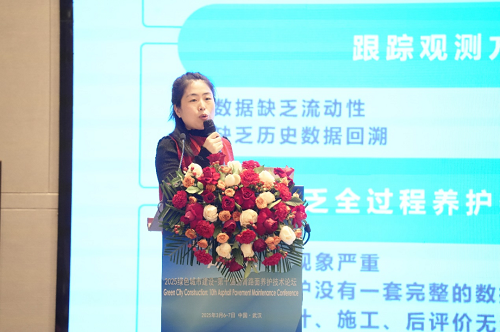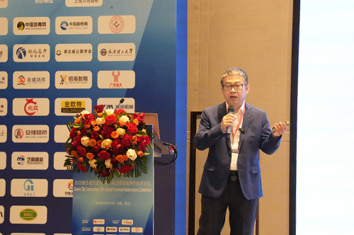 交通運(yùn)輸部公路科學(xué)研究院道路養(yǎng)護(hù)研發(fā)部主任、交通部重點(diǎn)實(shí)驗(yàn)室副主任王杰博士分享了《低碳高性能聚氨酯路面材料與應(yīng)用技術(shù)》。王主任從聚氨酯概述、路用聚氨酯混合料、聚氨酯路面結(jié)構(gòu)和工程應(yīng)用等方面詳細(xì)展開,全面展示了聚氨酯路面性能優(yōu)異、節(jié)省石材、基材適應(yīng)性強(qiáng)和綠色環(huán)保的技術(shù)優(yōu)勢。與此同時,他也指出聚氨酯路面目前面臨造價高、施工控制難和開放交通長的難題并提出了下一步的工作建議,期待行業(yè)共同合作進(jìn)步。