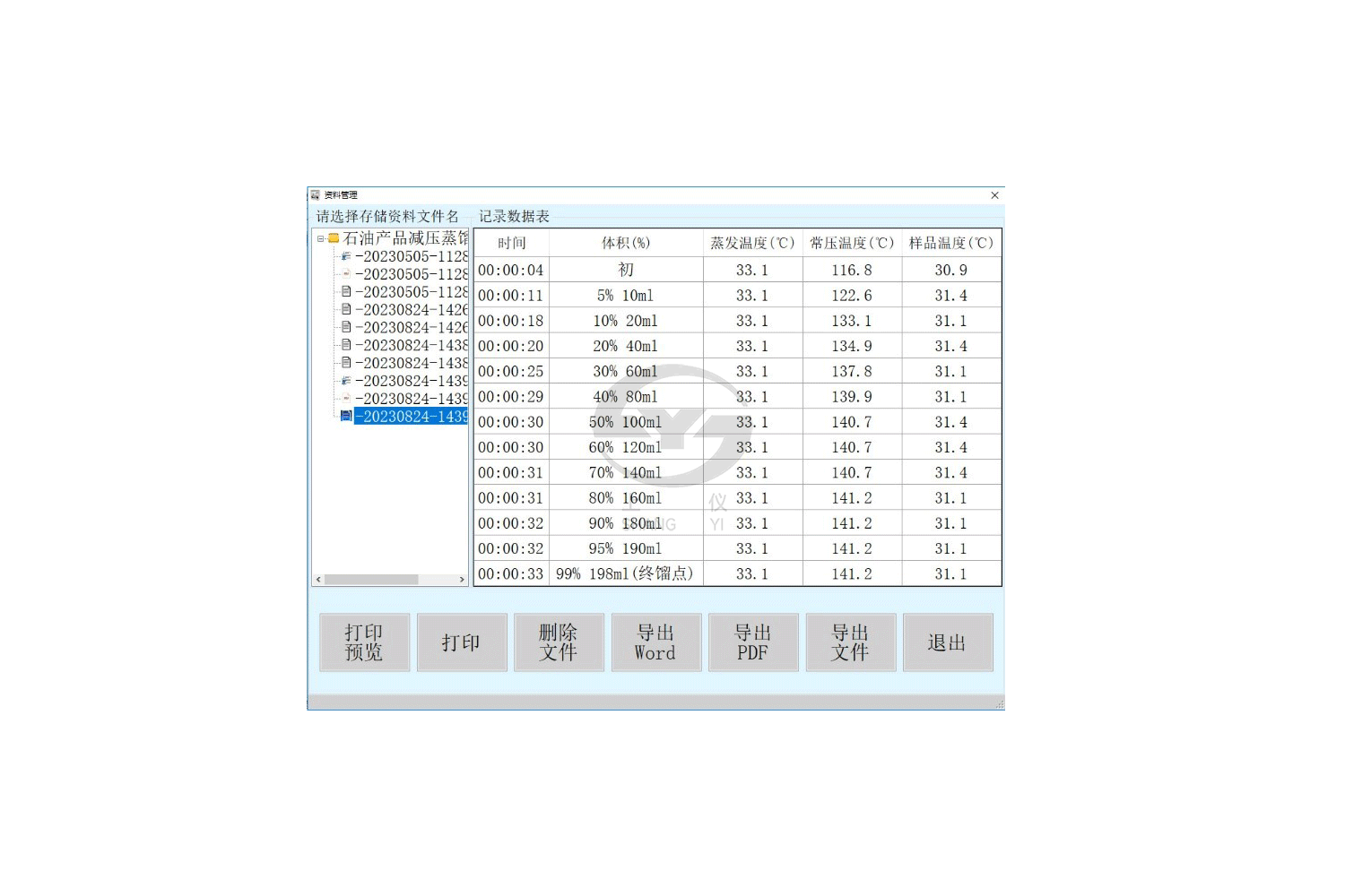 11、用戶(hù)只需按一個(gè)鍵,就可記錄下初餾點(diǎn)及其時(shí)間或當(dāng)前回收體積下的回收溫度及其時(shí)間。