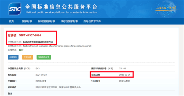近日,國(guó)家標(biāo)準(zhǔn)委正式批準(zhǔn)發(fā)布:國(guó)家標(biāo)準(zhǔn)《石油瀝青性能等級(jí)評(píng)價(jià)試驗(yàn)方法》由TC280(全國(guó)石油產(chǎn)品和潤(rùn)滑劑標(biāo)準(zhǔn)化技術(shù)委員會(huì))歸口,TC280SC4(全國(guó)石油產(chǎn)品和潤(rùn)滑劑標(biāo)準(zhǔn)化技術(shù)委員會(huì)石油瀝青分會(huì))執(zhí)行。上海昌吉地質(zhì)儀器有限公司作為核心起草單位之一,將前沿的實(shí)踐成果、創(chuàng)新理念、專(zhuān)業(yè)技術(shù)積淀與專(zhuān)家們共同凝練為標(biāo)準(zhǔn)條文。深度參與了該標(biāo)準(zhǔn)的制定工作,為提升行業(yè)整體技術(shù)水平提供了關(guān)鍵依據(jù)。 該標(biāo)準(zhǔn)已于2025年3月1日起正式實(shí)施。