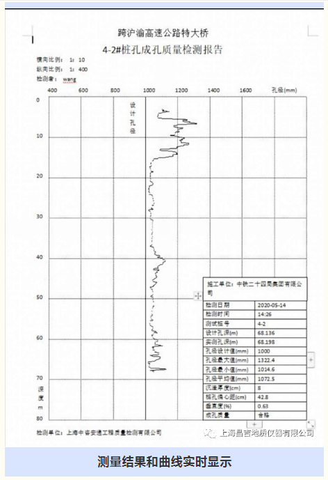 實(shí)時(shí)顯示處理各項(xiàng)檢測數(shù)據(jù)和曲線,快速繪制成孔質(zhì)量報(bào)告。